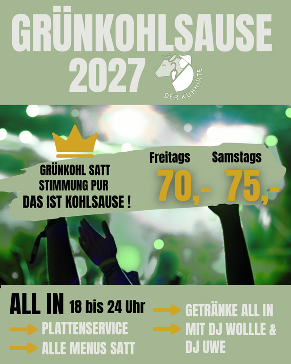 Freut euch auf die legendäre Grünkohlsause im Kuhhirten